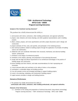 Program Learning Outcomes – T109– Architectural Technology MTCU code– 60600 9. The graduate has reliably demonstrated the ability to