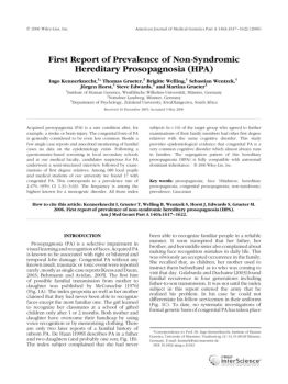2006 Wiley-Liss, Inc. American Journal of Medical Genetics Part A 140A:1617–1622 (2006) First Report of Prevalence of Non-Syndromic Hereditary Prosopagnosia (HPA)