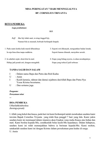 MISA PERINGATAN 7 HARI MENINGGALNYA<br>BP. CORNELIUS TRIYANTA