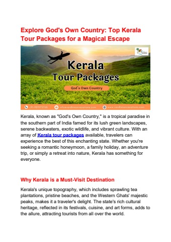Kerala tour packages are your gateway to a world of emerald backwaters, mist-clad hills, and sun-kissed beaches. By selecting the right package, you can indulge in the experiences that this state is renowned for, from its culinary delights to its rejuvenating Ayurvedic treatments. So, pack your bags and embark on a journey to explore the breathtaking beauty that awaits in Kerala, where every moment is a memory in the making.