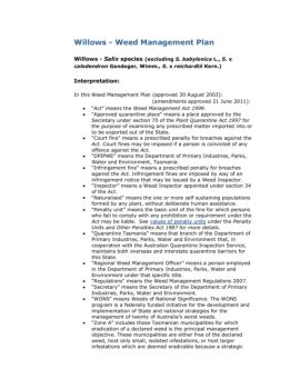 Willows - Weed Management Plan Willows - Salix species (excluding S. babylonica L., S. x calodendron Gandoger, Wimm., S. x reichardtii Kern.) Interpretation: