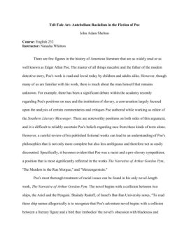 Tell-Tale Art: Antebellum Racialism in the Fiction of Poe John Adam Shelton Course: English 232 Instructor: Natasha Whitton There are few figures in the history of ...