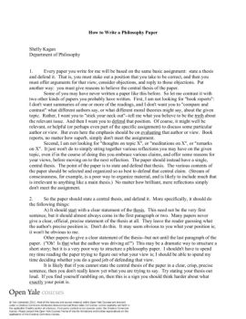 1 How to Write a Philosophy Paper Shelly Kagan Department of Philosophy 1. Every paper you write for me will be based on the same basic assignment: state a thesis