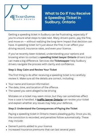 Getting a speeding ticket in Sudbury can be frustrating, especially if you’re unsure what steps to take next. Many drivers panic, pay the fine, and move on — without realizing the long-term impact that decision can have. A speeding ticket isn’t just about the fine; it can affect your driving record, insurance rates, and even your licence.