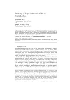 Anatomy of High-Performance Matrix Multiplication KAZUSHIGE GOTO The University of Texas at Austin and ROBERT A. VAN DE GEIJN The University of Texas at Austin