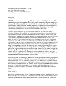 YOSEMITE II BACKCOUNTRY TRAIL CREW MAY 2013 MONTHLY REPORT ...