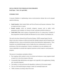 SOCIAL PROTECTION PROGRAM FOR ZIMBABWE Draft Paper – Paris ...