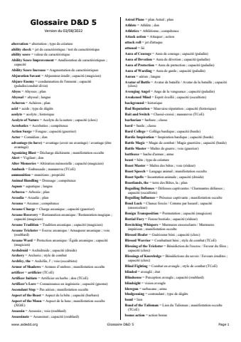 DnD 5 - FR - Glossaire EN - FR