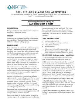 USDA Natural Resources Conservation Service Soil Biology Classroom Activities Draft 2/01 Page 2 of 6 Earthworm farm (cont.) VARIATION: Earthworms mix soil