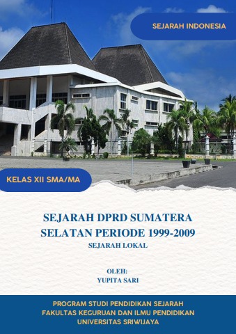 Melalui digital book kali ini kita akan membahas mengenai sejarah DPRD Provinsi Sumatera Selatan periode 1999-2009. Dengan mempelajari digital book ini diharapkan bisa menambah wawasan kalian mengenai sejarah politik DPRD Sumatera Selatan Periode 1999-2009. Bagaimana struktur kepengurusan dan anggota-anggota yang terpilih dari hasil pemilu 1999-2009 dan apa saja hasil pencapaian yang berhasil diraih oleh DPRD Sumatera Selatan Periode 1999-2009.