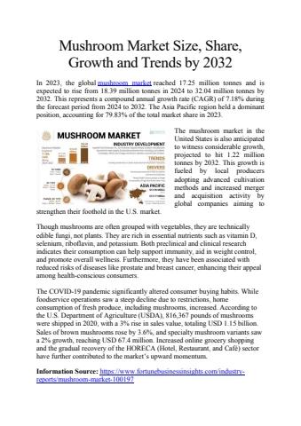 The mushroom market in the United States is also anticipated to witness considerable growth, projected to hit 1.22 million tonnes by 2032.