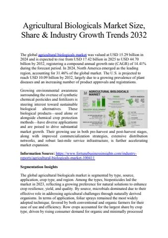 The global agricultural biologicals market was valued at USD 15.29 billion in 2024 and is expected to rise from USD 17.42 billion in 2025 to USD 44.70 billion by 2032, registering a compound annual growth rate (CAGR) of 14.41% during the forecast period.