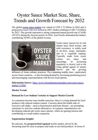 Oyster Sauce Market Size, Share, Trends and Growth Forecast by 2032