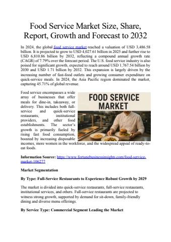 Food Service Market Size, Share, Report, Growth and Forecast to 2032