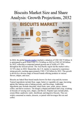 In 2024, the global biscuits market reached a valuation of USD 108.75 billion. It is anticipated to grow from USD 113.76 billion in 2025 to USD 167.69 billion by 2032, reflecting a compound annual growth rate (CAGR) of 5.70% throughout the forecast period.
