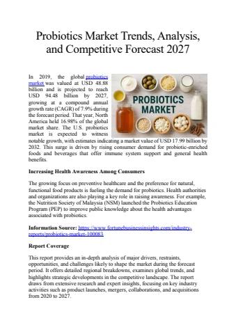 Probiotics Market Trends, Analysis, and Competitive Forecast 2027