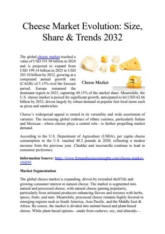 Cheese Market Size, Share & Key Trends to Watch by 2032