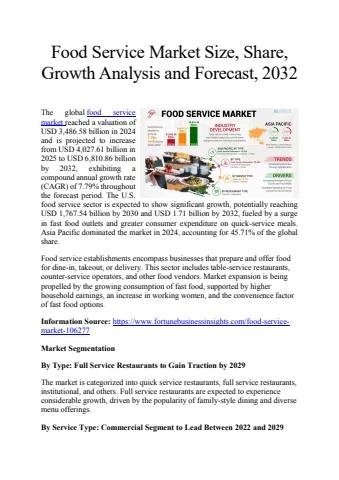 The global food service market reached a valuation of USD 3,486.58 billion in 2024 and is projected to increase from USD 4,027.61 billion in 2025 to USD 6,810.86 billion by 2032, exhibiting a compound annual growth rate (CAGR) of 7.79% throughout the forecast period.