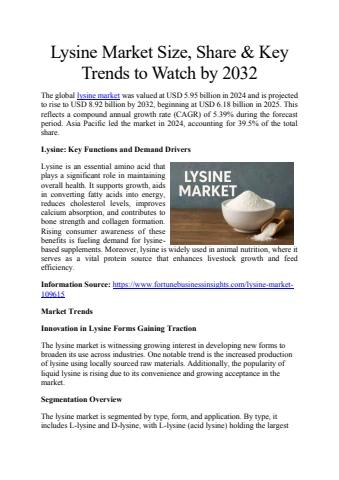 Lysine Market Size, Share & Key Trends to Watch by 2032