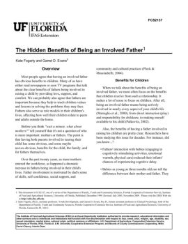 The Hidden Benefits of Being an Involved Father 3 • tend to have fewer behavioral problems; in fact, even when not living with their children and their
