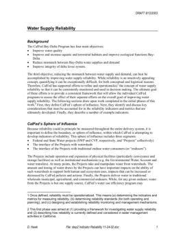 DRAFT 8/12/2003 D. Hawk File: step2 Indicator Reliability 11-24-02.doc 1 Water Supply Reliability Background The CalFed Bay-Delta Program has four main objectives: