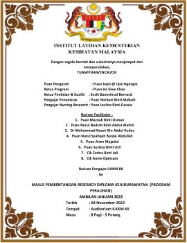 MAJLIS PEMBENTANGAN RESEARCH DIPLOMA KEJURURAWATAN (PROGRAM PERALIHAN)