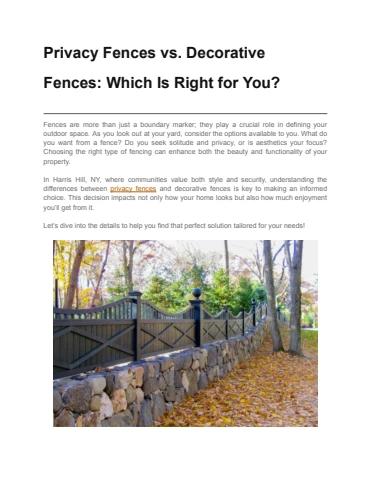 In Harris Hill, NY, where communities value both style and security, understanding the differences between privacy fences and decorative fences is key to making an informed choice. This decision impacts not only how your home looks but also how much enjoyment you’ll get from it.