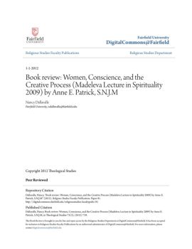SHORTER NOTICES 739 WOMEN, CONSCIENCE, AND THE CREATIVE PROCESS. By Anne E. Patrick, S.N.J.M. Madeleva Lecture in Spirituality (2009). Mahwah, NJ: Paulist, 2011.