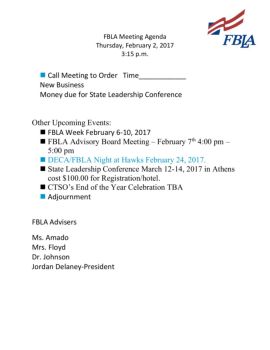 FBLA Meeting Agenda 020217