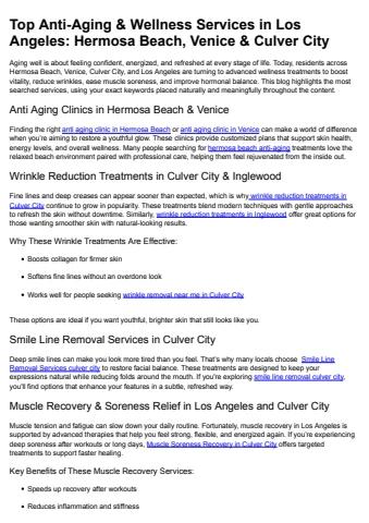 Top Anti-Aging & Wellness Services in Los Angeles-Hermosa Beach, Venice & Culver City