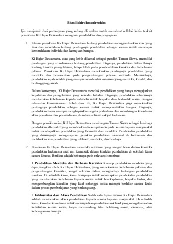 Fikiran Kritis Fosofi pemikiran KI Hajar Dewantara tentang pendidikan