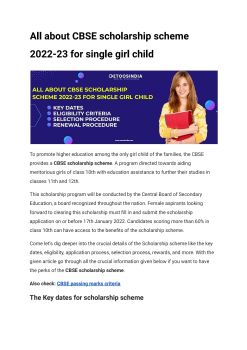 All about CBSE scholarship scheme 2022-23 for single girl child