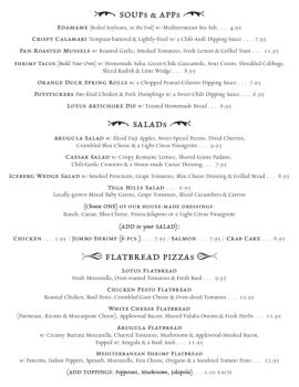[ SOUPs & APPs \ Edamame (Boiled Soybeans, in the Pod) w/ Mediterranean Sea Salt . . . 4.95 Crispy Calamari Tempura-battered & Lightly-fried w/ a Chili-Aioli Dipping ...