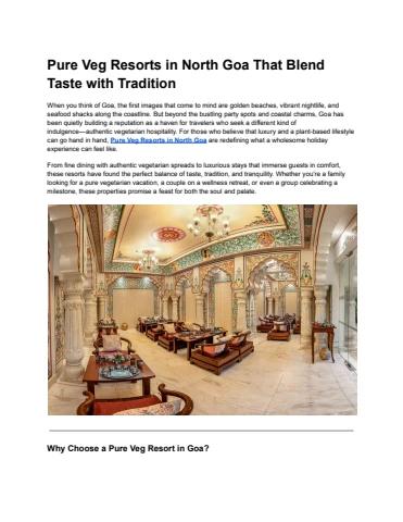 When you think of Goa, the first images that come to mind are golden beaches, vibrant nightlife, and seafood shacks along the coastline. But beyond the bustling party spots and coastal charms, Goa has been quietly building a reputation as a haven for travelers who seek a different kind of indulgence—authentic vegetarian hospitality. For those who believe that luxury and a plant-based lifestyle can go hand in hand, Pure Veg Resorts in North Goa are redefining what a wholesome holiday experience can feel like.