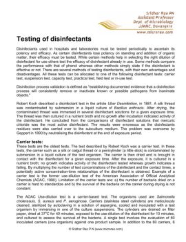 © Sridhar Rao P.N (www.microrao.com) Testing of disinfectants Disinfectants used in hospitals and laboratories must be tested periodically to ascertain its