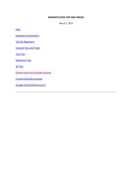 MICROSTATION TIPS AND TRICKS . March 1, 2013 . FAQ. Keyboard Accelerators Tips for Beginners. General Tips and Tricks Text Tips. Reference Tips 3D Tips