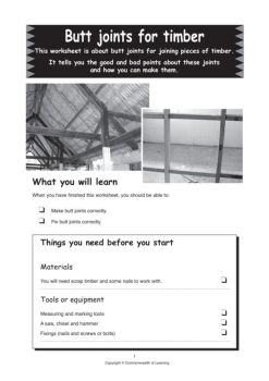 Butt joint worksheet 8 Copyright © Commonwealth of Learning Activity Use scrap pieces of timber ... Title: butt joint worksheet.indd Created Date: 5/27/2004 3:57:21 PM