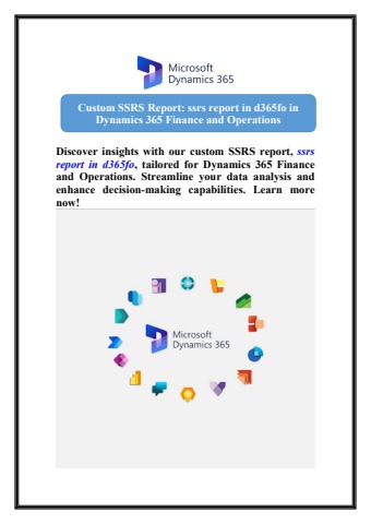 Discover insights with our custom SSRS report, ssrs report in d365fo, tailored for Dynamics 365 Finance and Operations. Streamline your data analysis and enhance decision-making capabilities. Learn more now!