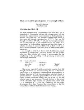 Pitch-accent and the phonologization of vowel length in Slavic Darya Kavitskaya Yale University 1. Introduction: Slavic CL The term Compensatory Lengthening (CL ...