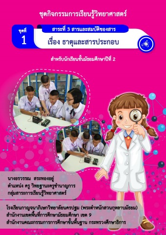 ชุดที่ 1 ธาตุและสารประกอบ/ชุดที่ 2 การแยกสาร /ชุดที่ 3 ปฏิกิริยาเคมีและสมการเคมี /ชุดที่ 4 เรื่อง มวล พลังงานฯ /ชุดที่ 5 ปัจจัยที่มีผลฯ /ชุดที่ 6 ปฏิกิริยาเคมีฯ