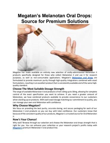 Megatan’s Melanotan Oral Drops: Source for Premium Solutions