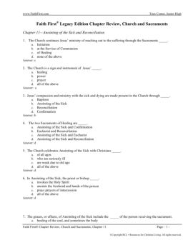 www.FaithFirst.com Teen Center, Junior High Faith First® Chapter Review, Church and Sacraments, Chapter 11 Page – 1 – ©Copyright RCL • Resources for Christian ...