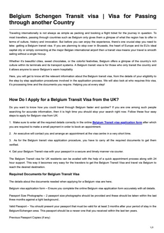 Belgium Schengen Transit visa Visa for Passing through another Country