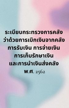 ระเบียบกระทรวงการคลัง ว่าด้วยการเบิกเงินจากคลัง การรับเงิน การจ่ายเงิน การเก็บรักษาเงิน และการนำเงินส่งคลัง พ.ศ. 2562