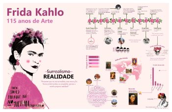 Infografia criativa sobre a vida e arte de Frida Kahlo