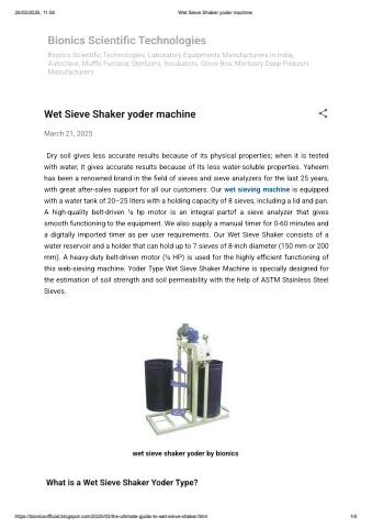 The Wet Sieve Shaker (Yoder Type) is designed for efficient wet particle size analysis in soil, minerals, and chemicals. It uses controlled vibration and water flow for precise separation, ensuring accurate results.