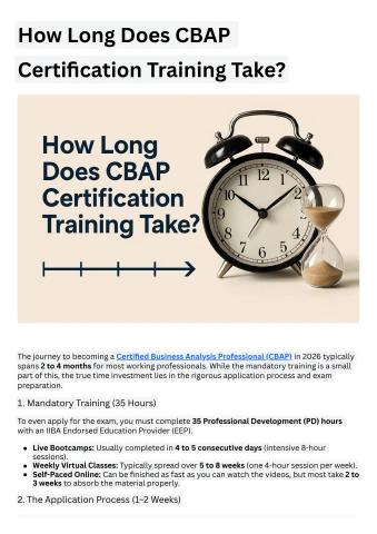 The journey to becoming a Certified Business Analysis Professional (CBAP) in 2026 typically spans 2 to 4 months for most working professionals. While the mandatory training is a small part of this, the true time investment lies in the rigorous application process and exam preparation.