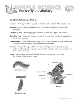 Butterfly Vocabulary - Earth's Birthday Project