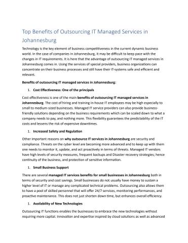 Top Benefits of Outsourcing IT Managed Services in Johannesburg