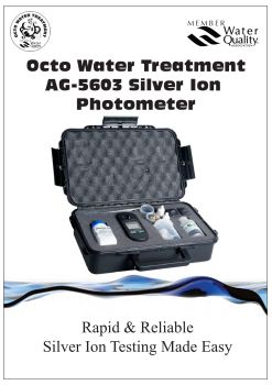 The AG-5603 is a small, lightweight digital photometer, specifically designed to accurately measure silver ions in water .The AG-5603 portable photometer features an advanced optical system; the combination of a special 570nm LED lamp, a narrow band interference filter, and silicon photocell ensuring accurate photometric readings every time. It is currently, the easiest to use, quickest and most accurate silver ion measurement tool on the market. Using Octo’s highly accurate span calibration method, for faster more accurate results than conventional silver ion meters.